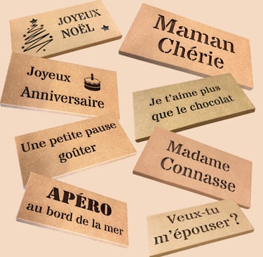 Notre objectif est de transformer une simple tablette de chocolat en cadeau unique. Pour cela, nous vous offrons une liberté totale :