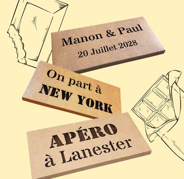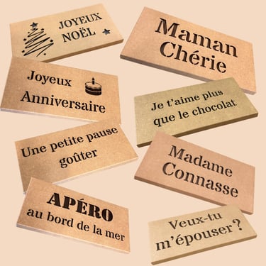 Que ce soit pour un moment intime (déclaration, remerciement, surprise) ou pour un événement professionnel (séminaire, cadeau client, fête d’entreprise), nos tablettes de chocolat personnalisées marqueront les esprits et feront plaisir à coup sûr.