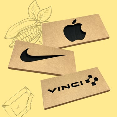 Découpe laser permettant de faire apparaître la tablette de chocolat elle-même, pour un effet surprenant et raffiné.